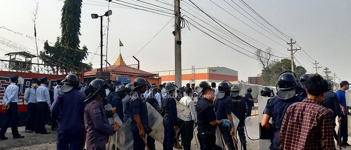 वीरगञ्ज । बाराको सिमरा स्थित जगदम्बा स्टिल उद्योगको विषयलाई लिएर स्थानीय र प्रहरीबीच झडप भएको छ । झडपका क्रममा ७ जना प्रहरी, १ जना सशस्त्र प्रहरी, ३ जना उद्योगका कर्मचारी घाईते भएको प्रहरीले जनाएको छ ।