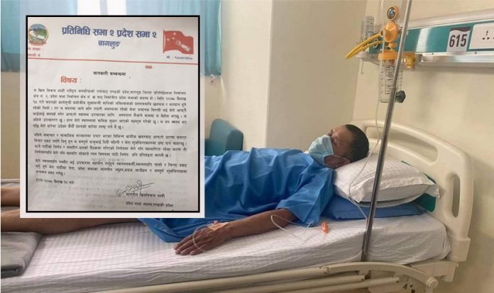 उनले बिहीबार प्रेस नोट जारी गर्दै भनेका छन्, ‘म सदनमा जाने भनि तयारी अवस्थामा रहेको बेला अचानक बिरामी भई मेरो आफ्नै भाइलाई सम्पर्क गरेर आफ्नो स्वास्थ्य उपचारका लागि अस्पताल लैजाने क्रममा बेहोस भएछु ।’