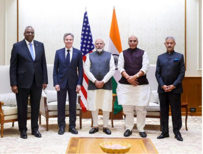 द्विपक्षीय सम्बन्धमा द्रुत बृद्धि र बढ्दो गहिराइलाई ध्यानमा राख्दै, प्रधानमन्त्री मोदीले भारत-अमेरिका साझेदारी वास्तवमा ‘विश्वको राम्रो’ को लागि बल हो भने, यो अचम्मको कुरा होइन। यस भनाइको भू-राजनीतिक प्रभाव प्रत्यक्ष र अप्रत्यक्ष रूपमा भू-राजनीतिक परिदृश्यमा चाँडै नै स्पष्ट हुन सक्छ। प्रधानमन्त्री नरेन्द्र मोदीले ‘२+२’ मन्त्रीस्तरीय वार्ताको समापन पछि अमेरिकी विदेशमन्त्री एन्टोनी ब्लिन्केन र रक्षा सचिव लोयड अस्टिनले संयुक्त रूपमा उहाँसँग भेट गरेपछि ट्वीट गरे। X मा एक पोस्टमा, मोदीले भने, “@SecBlinken र @SecDef प्राप्त गर्न पाउँदा खुसी छ। ‘2+2’ ढाँचा भारत-अमेरिका व्यापक वैश्विक रणनीतिक साझेदारीलाई अझ बलियो बनाउनको लागि एक प्रमुख सक्षमकर्ता हो। लोकतन्त्र, बहुलवाद र हाम्रो साझा विश्वास। कानूनको शासनले विभिन्न क्षेत्रहरूमा हाम्रो पारस्परिक लाभकारी सहयोगलाई बलियो बनाउँछ। भारत-अमेरिका साझेदारी वास्तवमा विश्वव्यापी भलाइको लागि बल हो।”