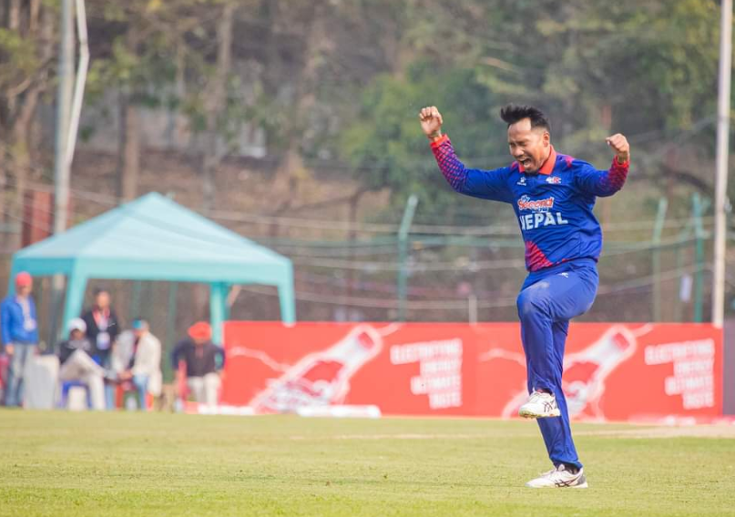 काठमाडौँ । एकदिवसीय अन्तर्राष्ट्रिय क्रिकेट शृंखलाको सोमबार जारी तेस्रो तथा अन्तिम खेलमा नेपालले क्यानडाको चौथो विकेट लिएको छ । नेपाली बलर ललित राजवंशीले क्यानडाको चौथो विकेट लिएका हुन् । उनले क्यानडाका ओपनर ब्याट्सम्यान नवनित धालिवाललाई ५० रनको ब्यक्तिगत स्कोरमा आउट गरे ।