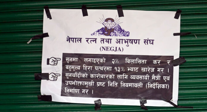 काठमाडौं । देशभर सुनचाँदीको कारोबार ठप्प पारेर व्यवसायीहरू आन्दोलनमा होमिएका छन् ।